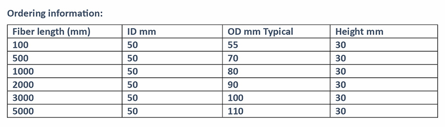 On request customised coils quote will be provided. Based on the fiber specification order information will vary. Tolerance ± 1%